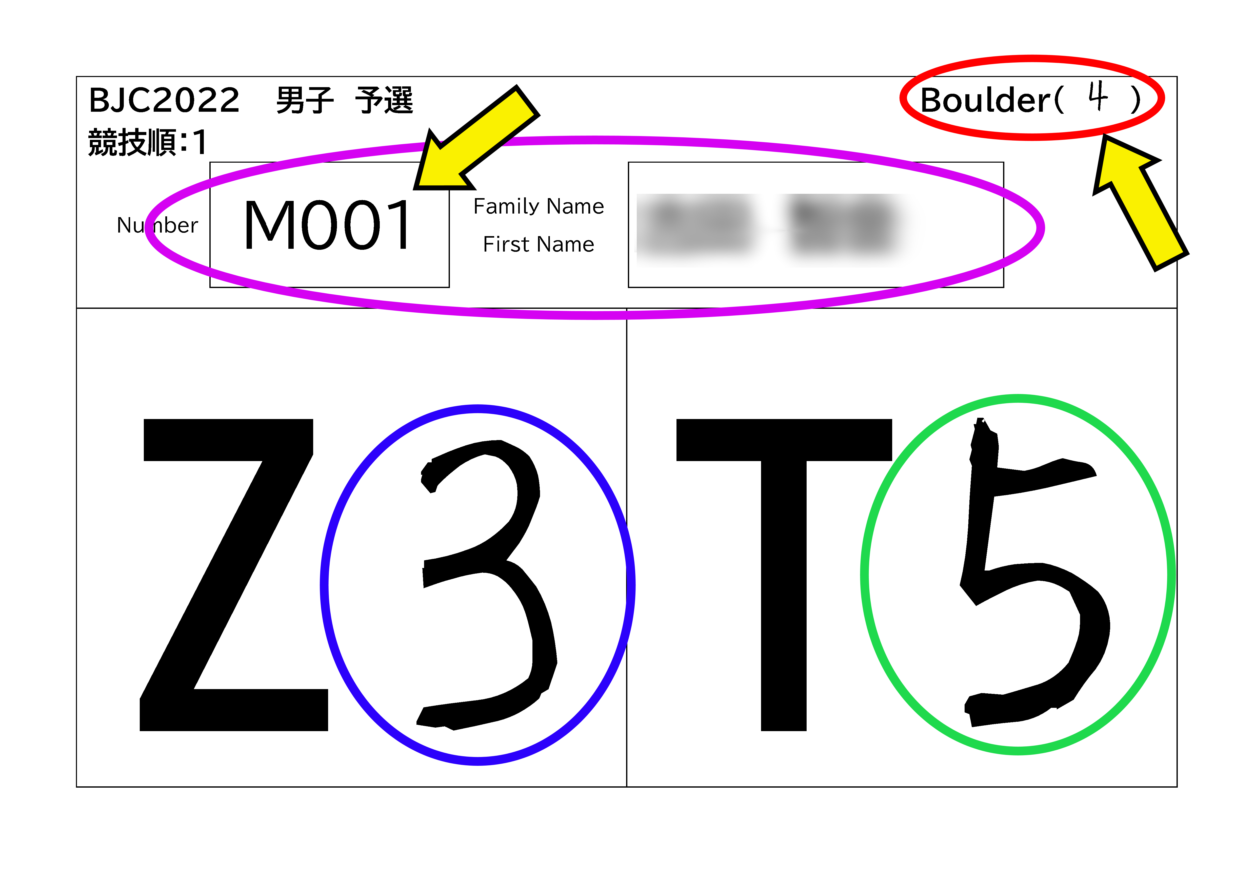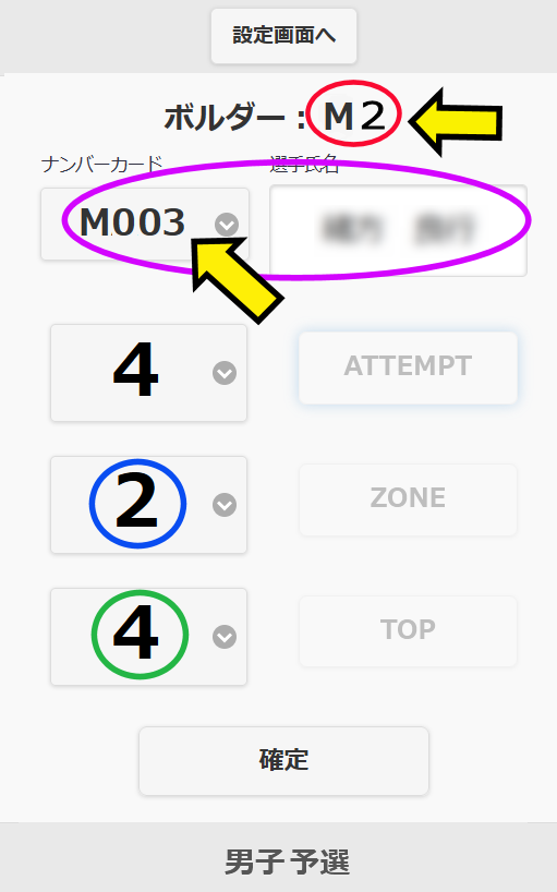 選手は審判といっしょに、以下の4か所が選手カードとタブレットの画面で一致しているかどうかを確認して下さい。